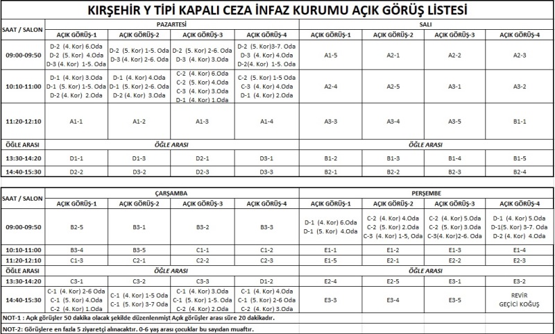 - AÇIK GÖRÜŞLER HER AYIN İLK TAM HAFTASI,DİĞER HAFTALARDA KAPALI GÖRÜŞ YAPTIRILACAKTIR