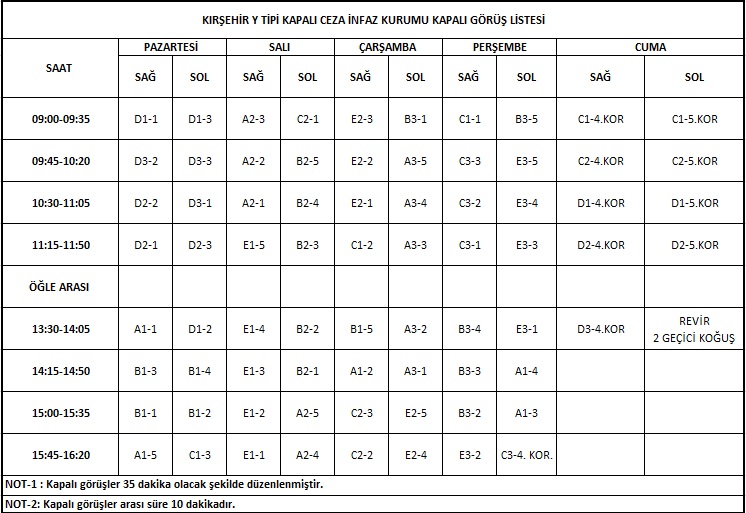 - AÇIK GÖRÜŞLER HER AYIN İLK TAM HAFTASI,DİĞER HAFTALARDA KAPALI GÖRÜŞ YAPTIRILACAKTIR